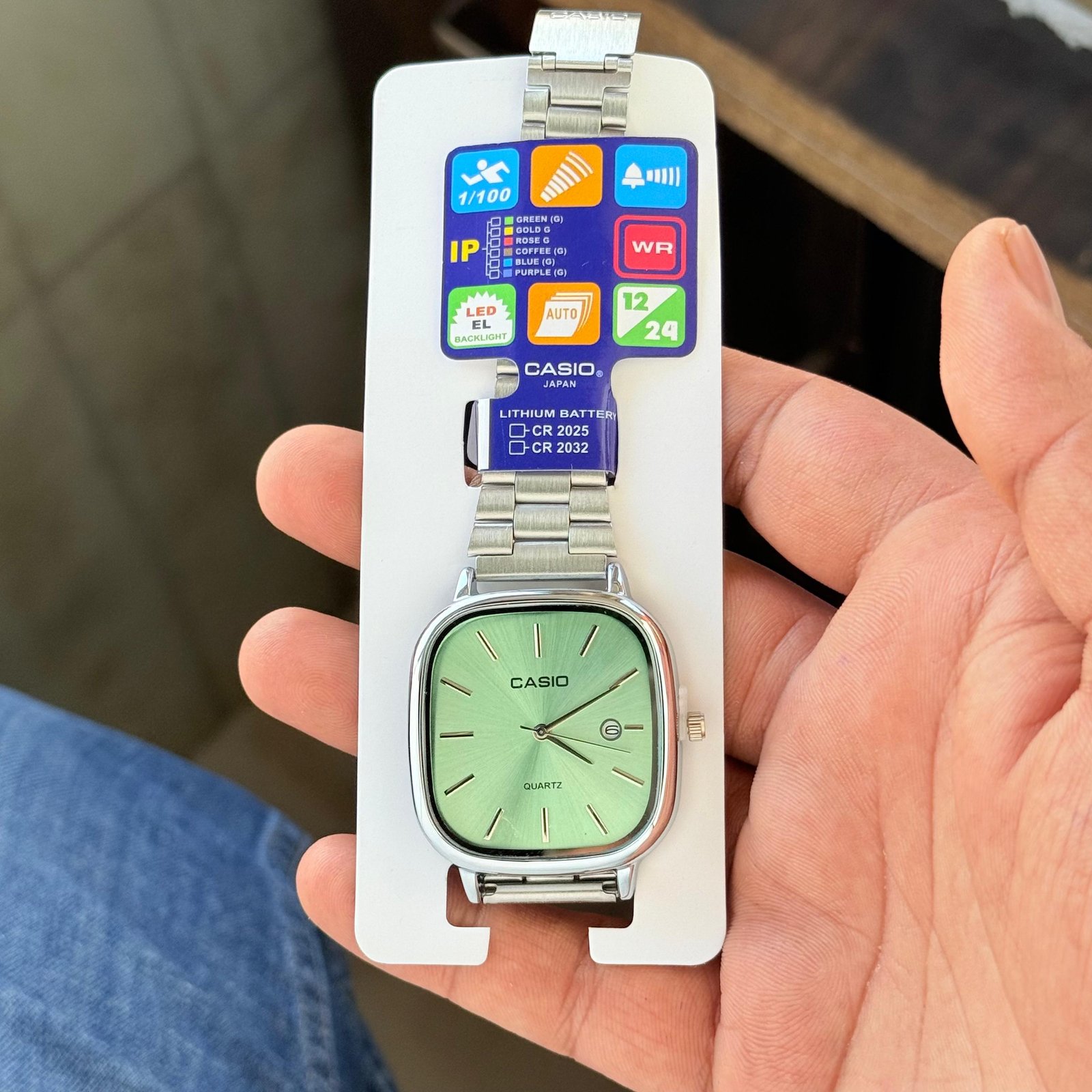 CASIO VINTAGE WATCH OFFERS SQUARE DIAL WITH DIFFERENT COLORS AND WITH METAL STRAP